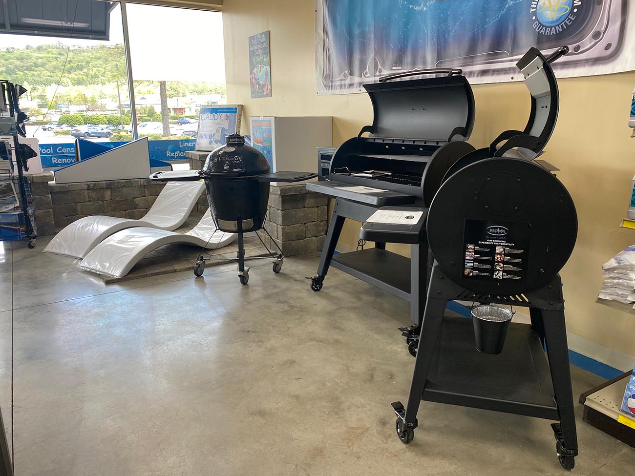 At Swimming Pool Services we offer a wide variety of pool and spa products that fit all your needs. Stop by our store and see our huge selection of pool and spa products. Our retail store provides pool and spa products including: Spas, Grills, Chemicals, Pool Toys, Floats, Pool Basketball, Drain bags and baskets and much much more. You can even come get your water tested right in our store! Stop in and see our massive selection of pool and spa products!